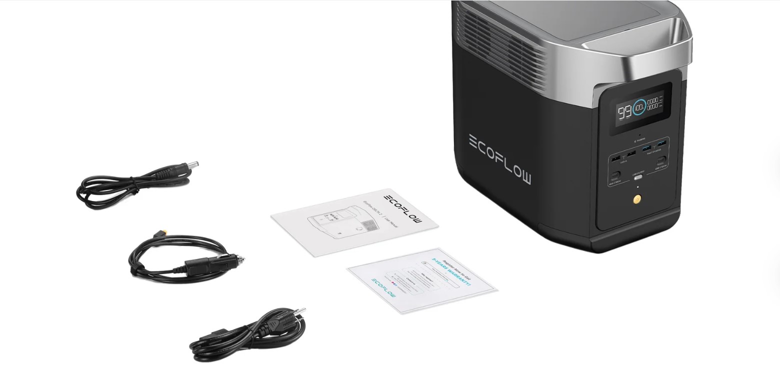 1.DELTA 2 2.AC charging cable 3.Car charging cable 4.DC5521 to DC5525 cable 5.User manual 6.App quick start guide 7.Warranty card